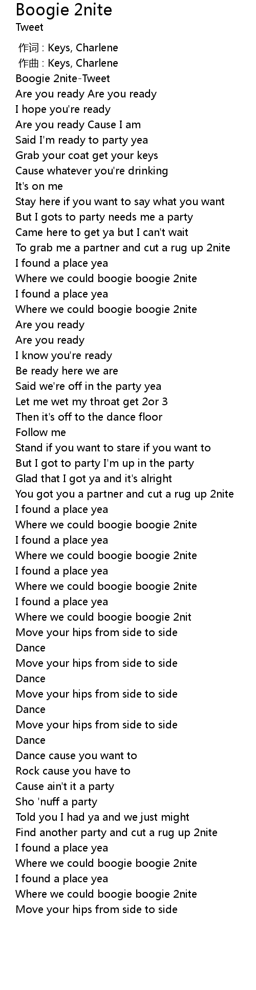 | [00:01.71] | Boogie 2nite-Tweet |