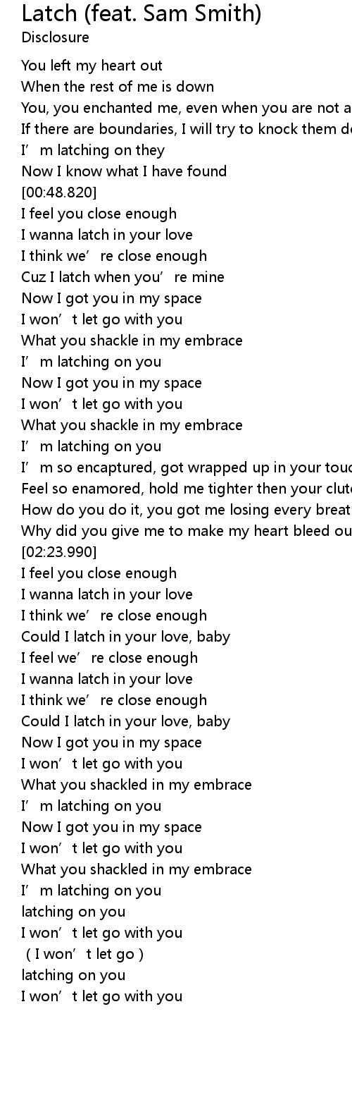 | [01:59.150] | Feel so enamored, hold me tighter then your clutch |