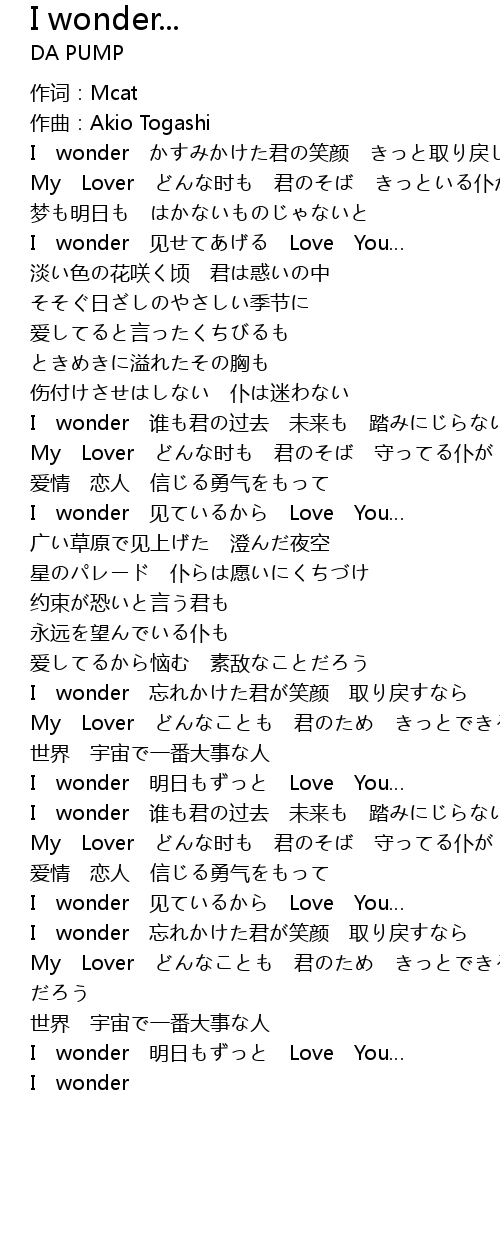 | I wonder 谁も君の过去 未来も 踏みにじらない | |