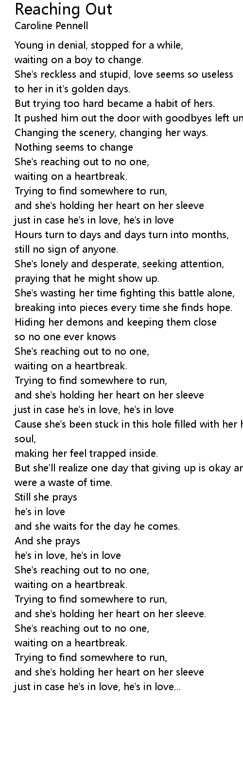 She's reaching out to no one, |