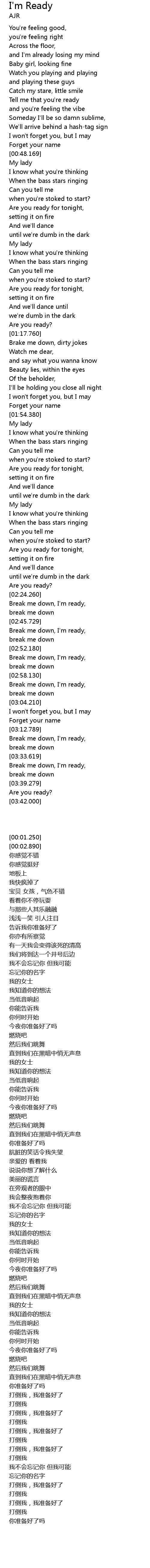 | [02:42.349] | Break me down, I'm ready, |