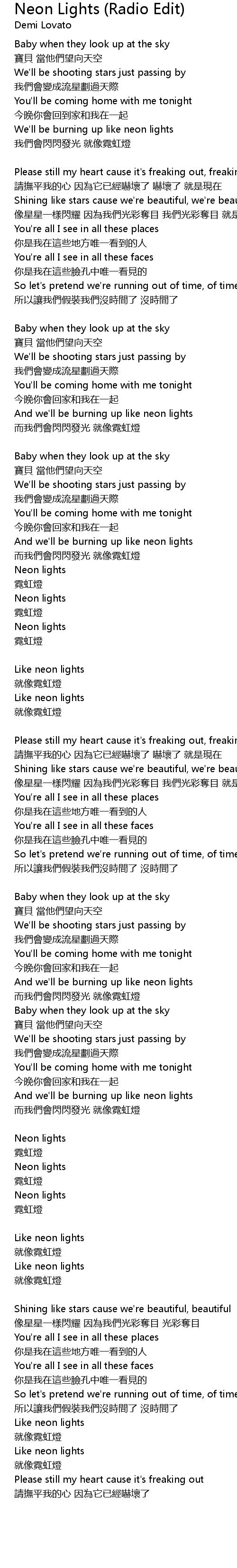 | And we' ll be burning up like neon lights | |