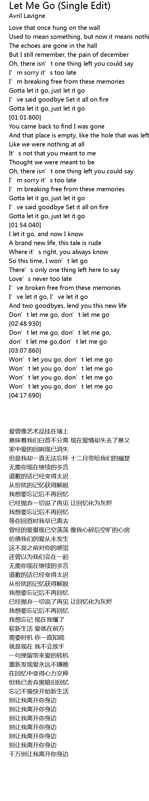 | [04:09.450] | Won' t let you go, don' t let me go |