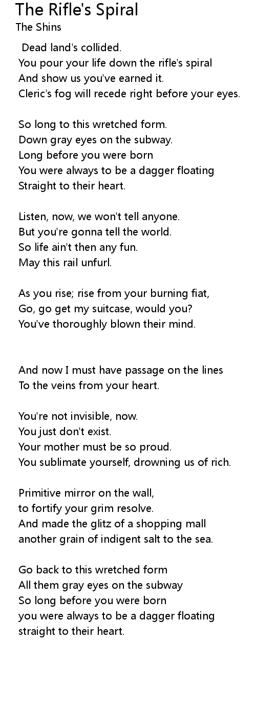 You pour your life down the rifle's spiral |