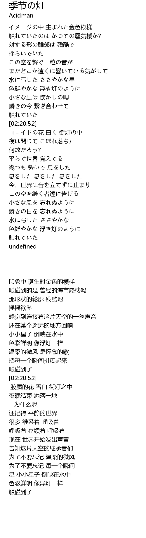 | [02:42.96] | コロイドの花 白く 街灯の中 |