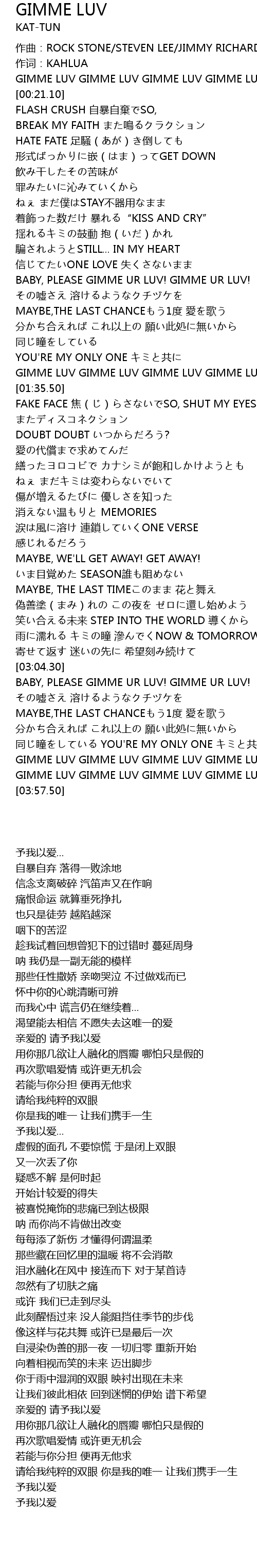 | [03:47.30] | GIMME LUV GIMME LUV GIMME LUV GIMME LUV |
