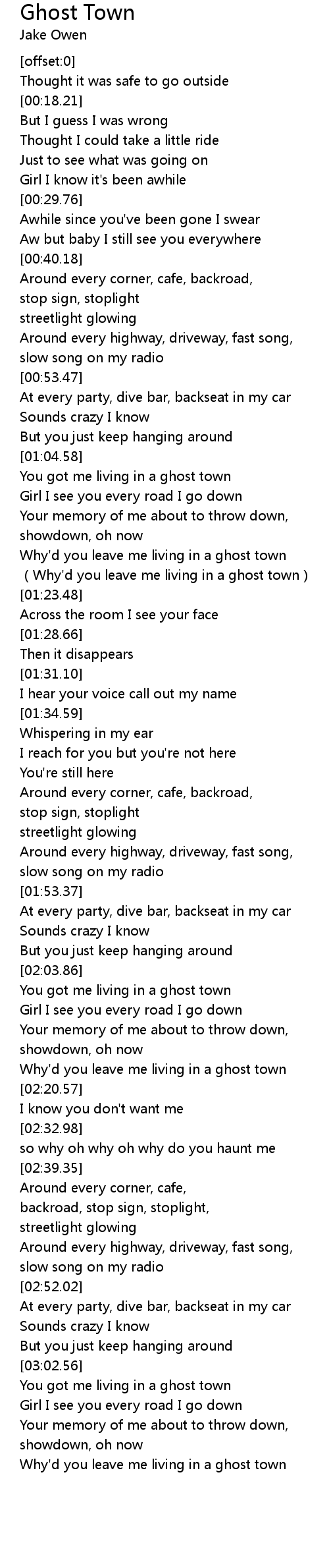 | [01:17.56] | Why' d you leave me living in a ghost town |