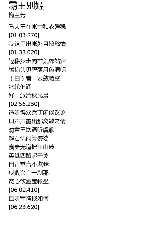 | [04:03.620] | 劝君王饮酒听虞歌 |