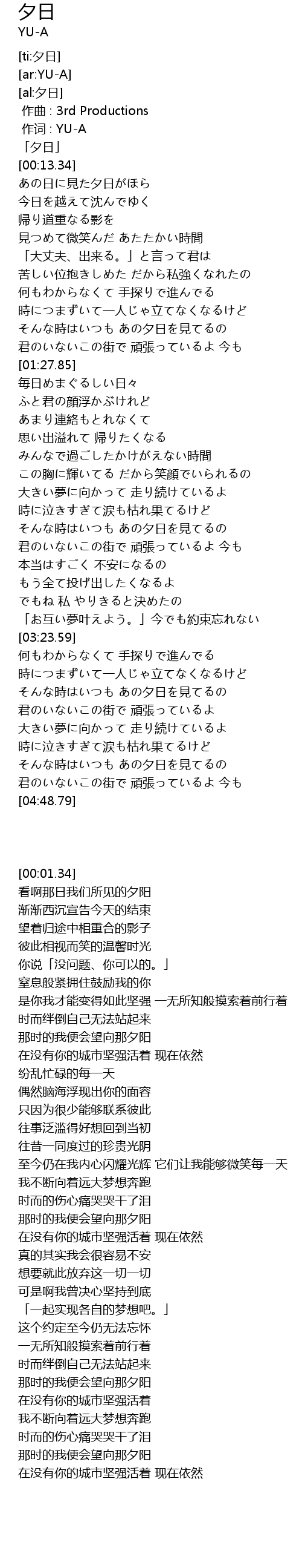| [00:01.34] | 「夕日」 |