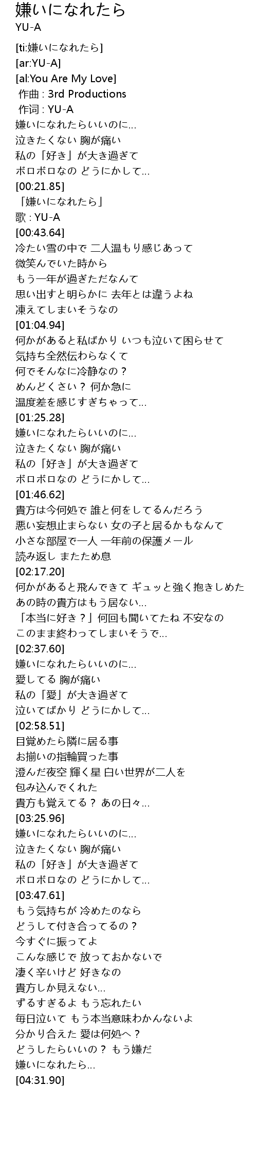 | [00:00.00] | 作词 : YU-A |