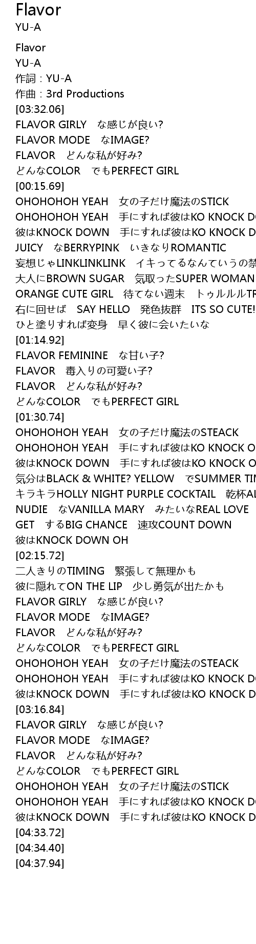 | [03:54.64] | FLAVOR どんな私が好み? |