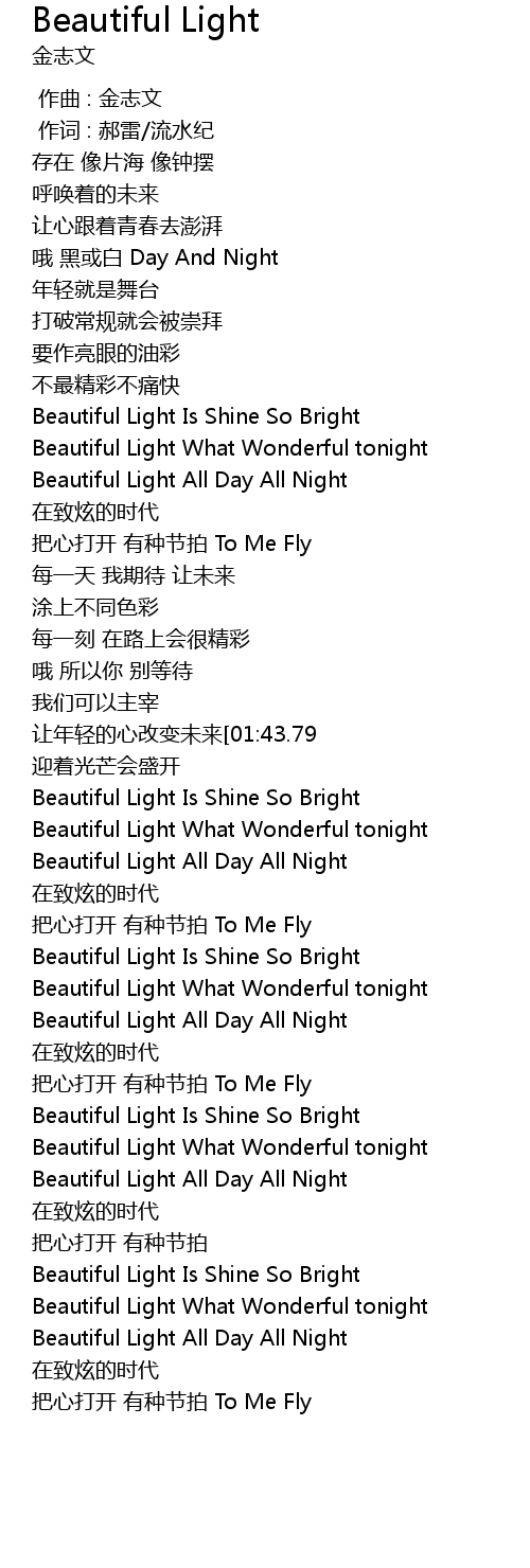 | [01:03.13] | Beautiful Light All Day All Night |