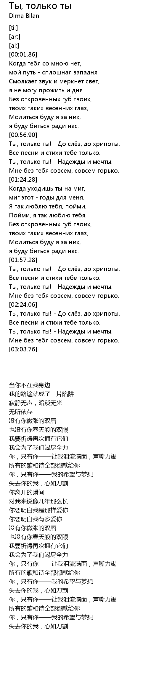 Ты, только ты! - Надежды и мечты. |