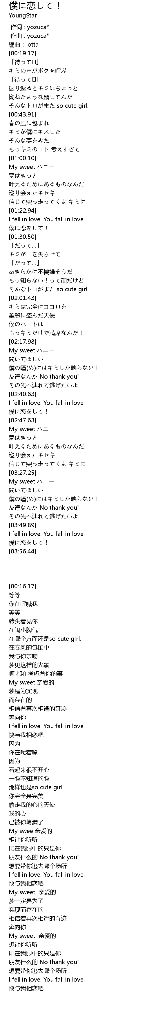 | [02:18.82] | My sweet ハニー |