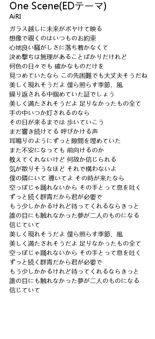 | [03:41.19] | 美しく満たされそうだよ 足りなかったもの全て |