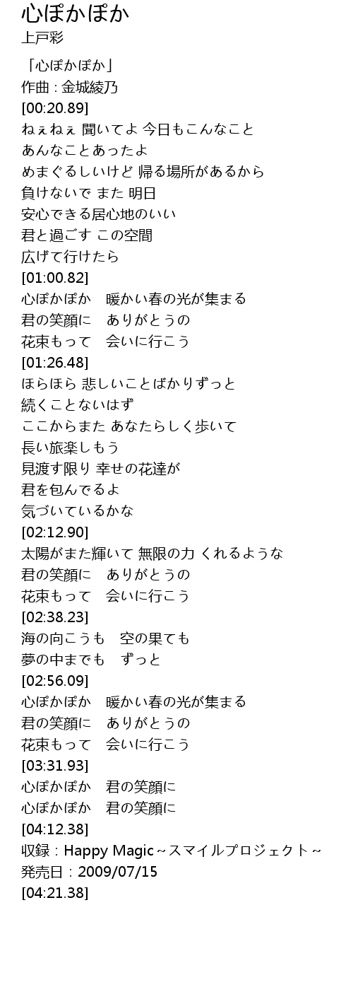 | [04:15.38] | 収録:Happy Magic~スマイルプロジェクト~ |