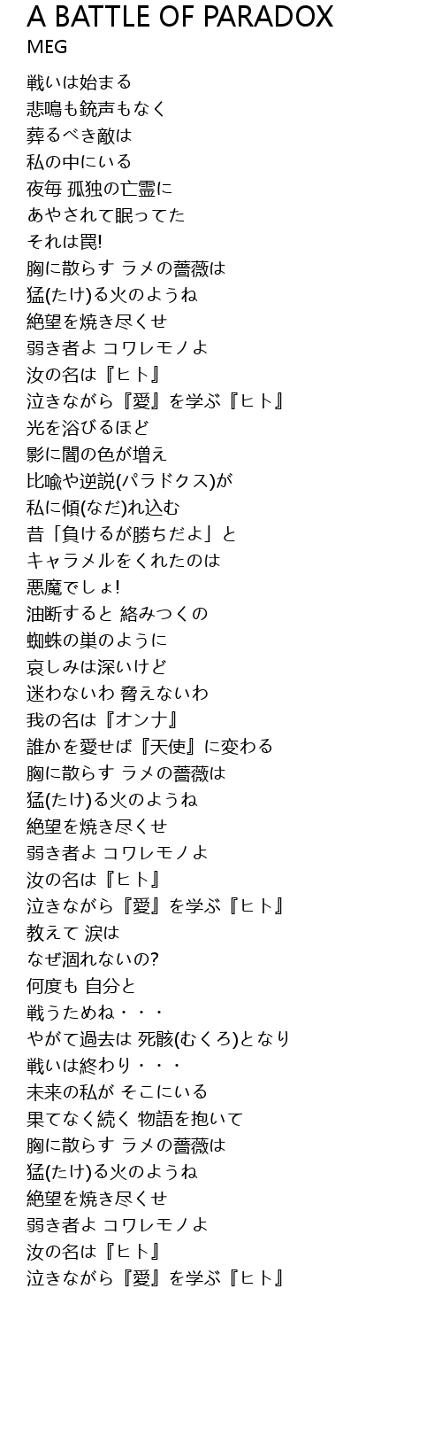 A BATTLE OF PARADOX Lyrics
