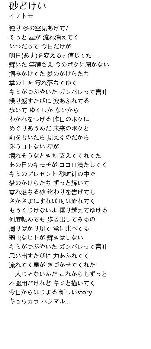砂どけい sha Lyrics