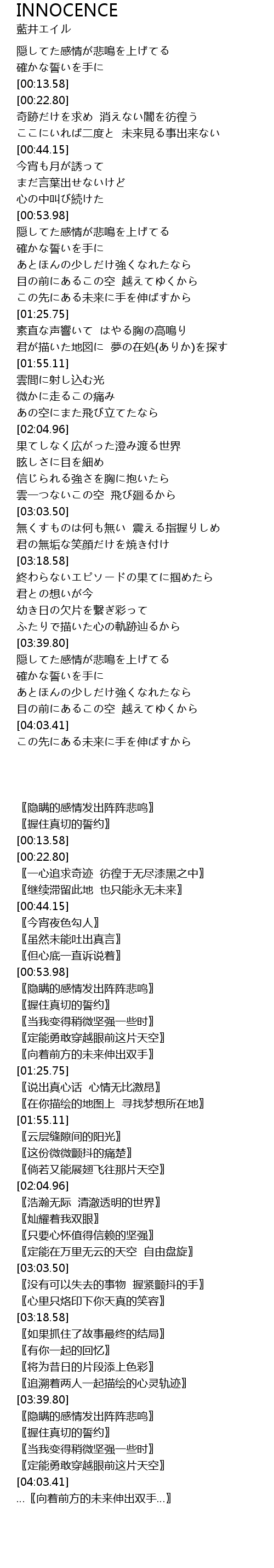 | [00:34.15] | ここにいれば二度と 未来見る事出来ない |
