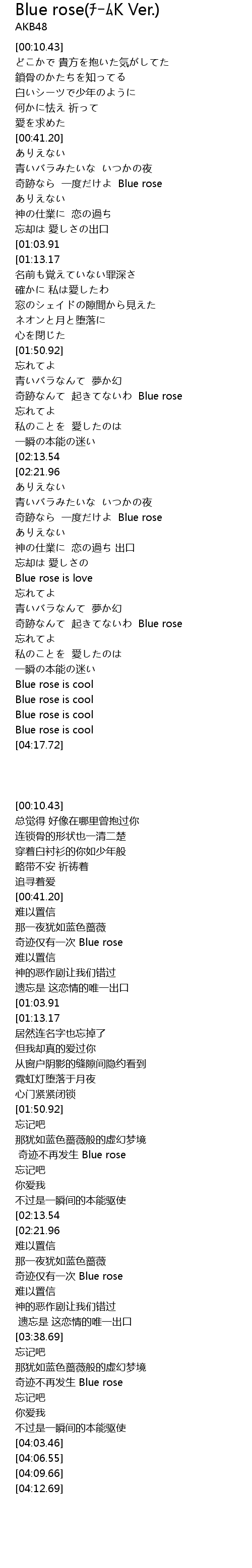 | [00:47.42] | 奇跡なら 一度だけよ Blue rose |