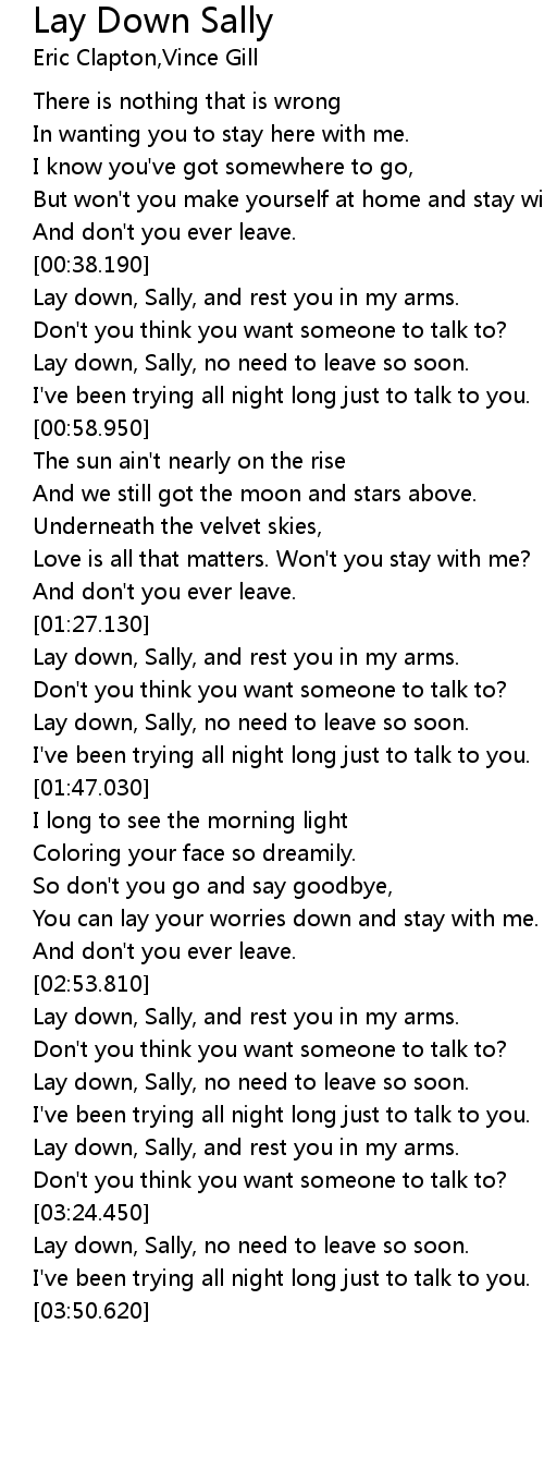 Lay down, Sally, and rest you in my arms. |