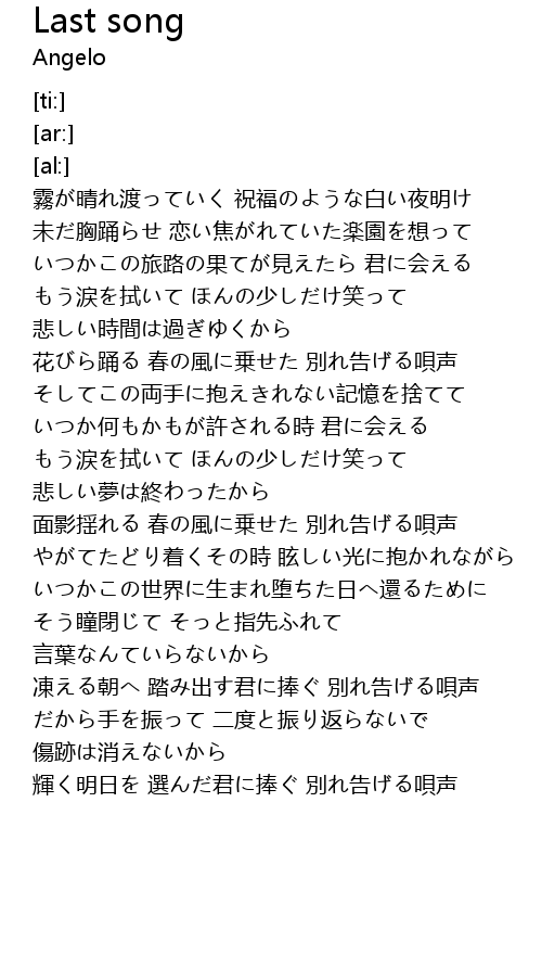 | [03:31.76] | 輝く明日を 選んだ君に捧ぐ 別れ告げる唄声 |