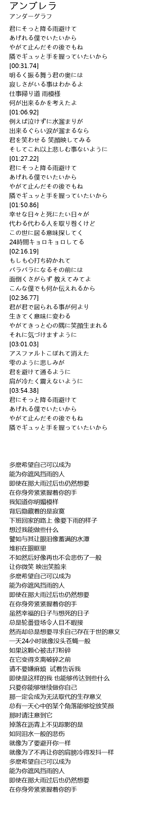 | [03:54.68] | 君にそっと降る雨避けて |