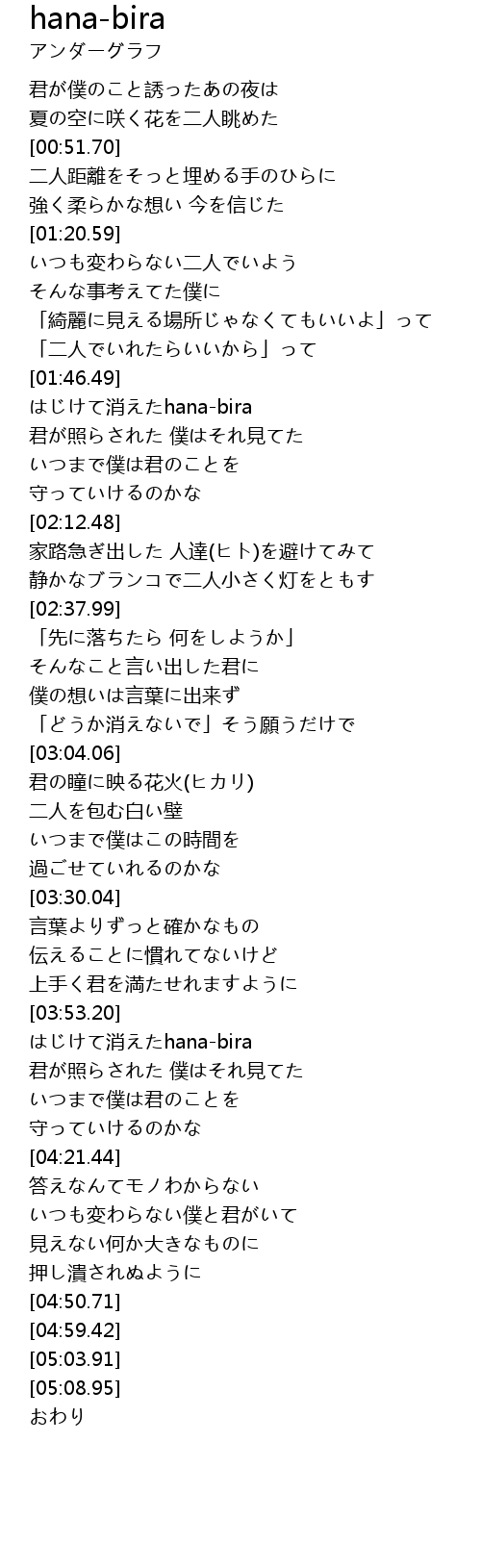| [03:04.55] | 君の瞳に映る花火(ヒカリ) |