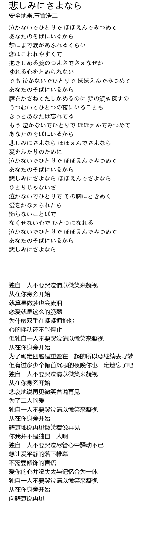 | [02:54.790] | 悲しみにさよなら ほほえんでさよなら |