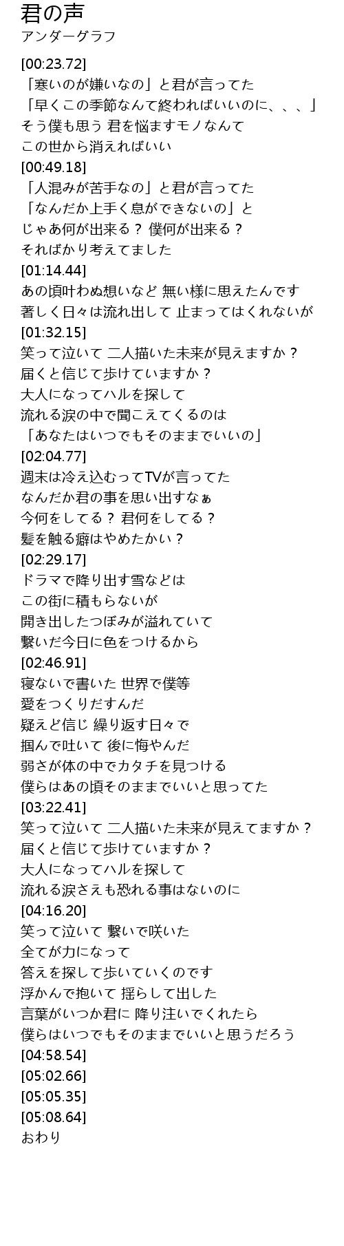 | [02:12.42] | なんだか君の事を思い出すなぁ |