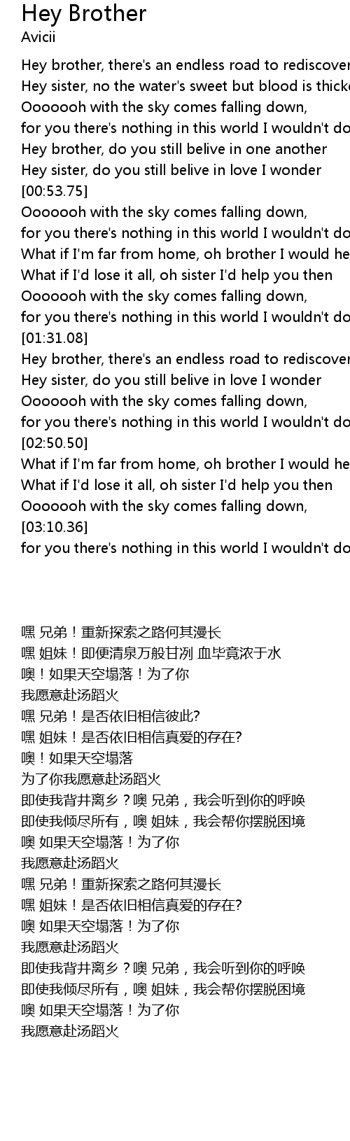 Hey brother, there's an endless road to rediscover |