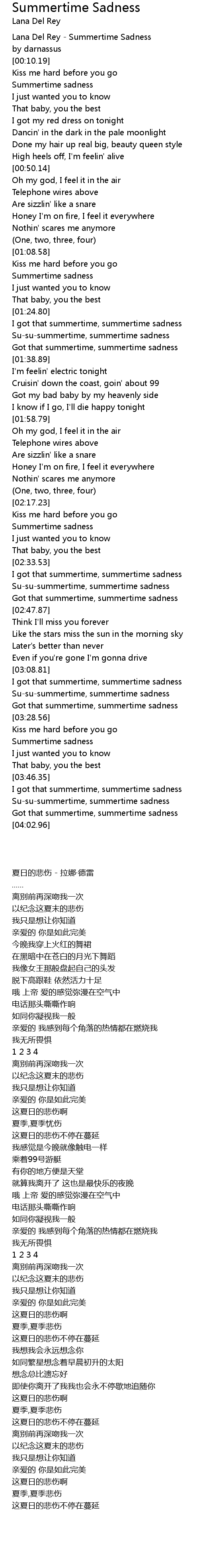 Lana Del Rey - Summertime Sadness |