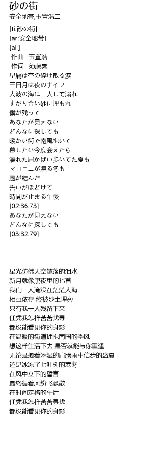 | [00:00.00] | 作曲 : 玉置浩二 |