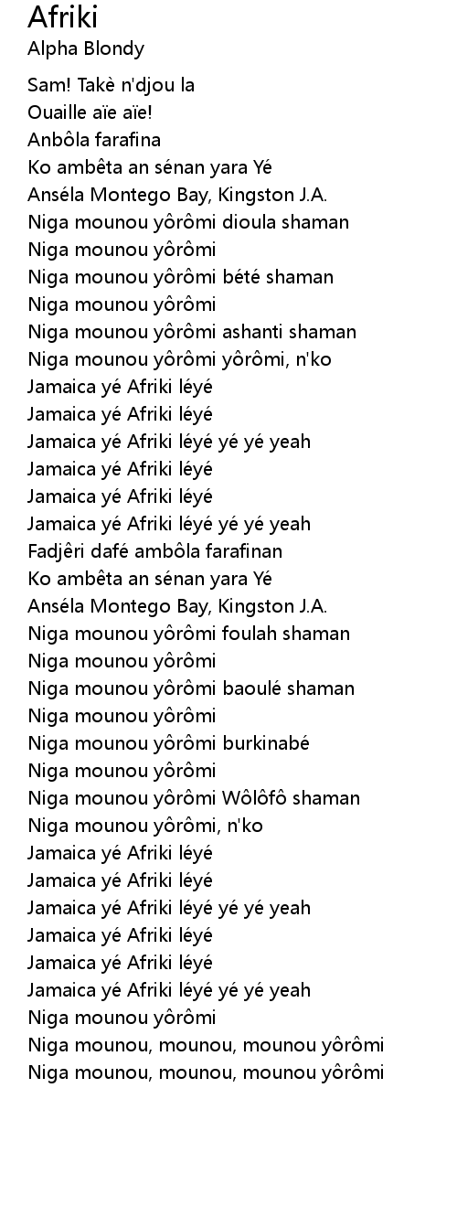 | Jamaica yé Afriki léyé yé yé yeah | |