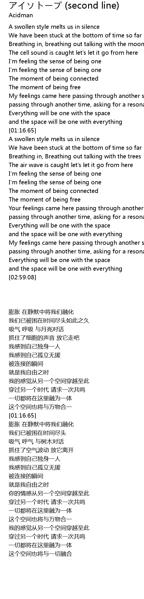 | [01:03.35] | Everything will be one with the space |