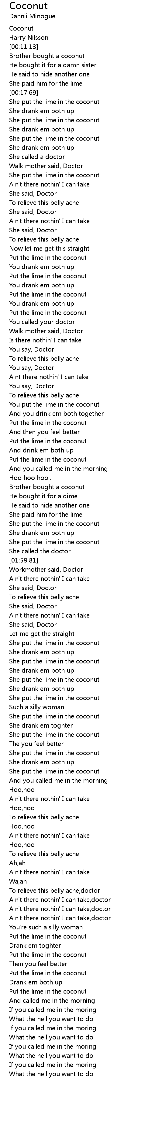 She put the lime in the coconut |
