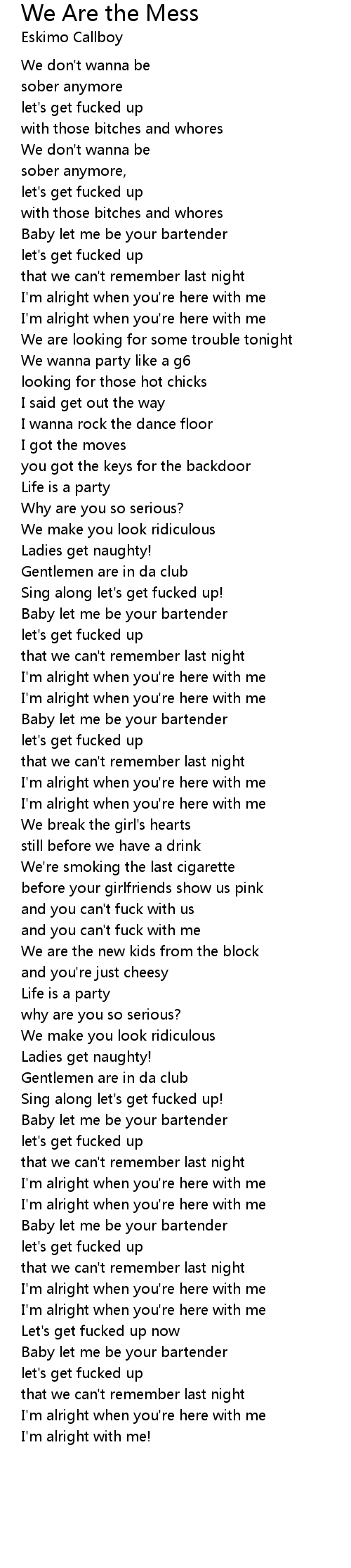 Sing along let's get fucked up! |