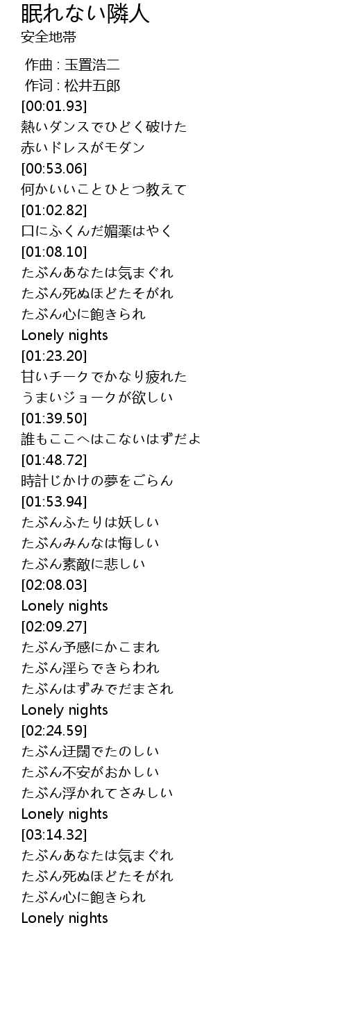| [03:28.80] | Lonely nights |