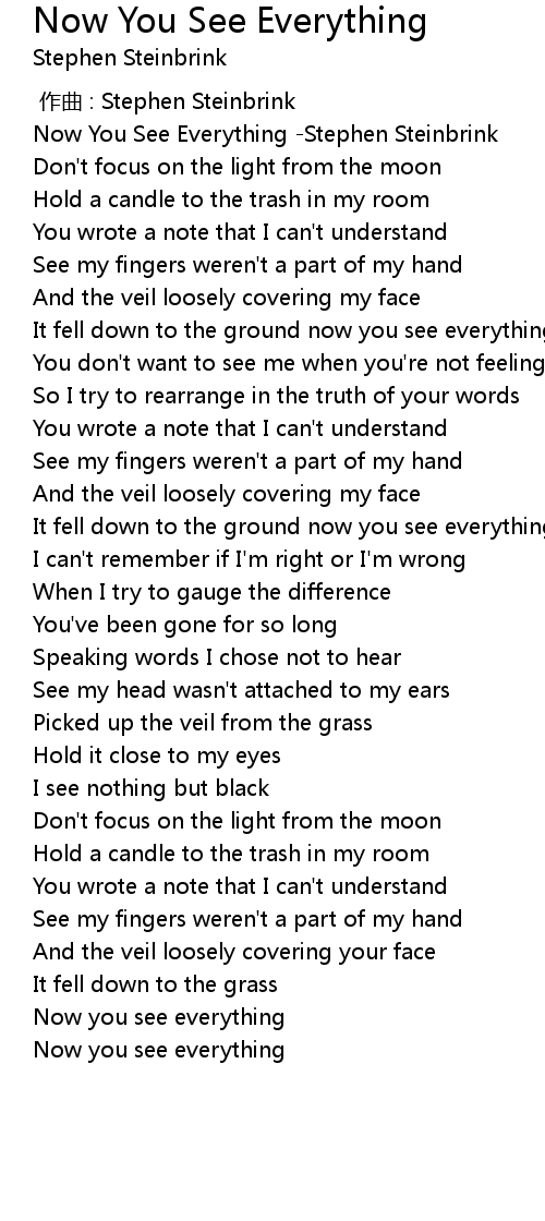 | [00:00.00] | Now You See Everything Stephen Steinbrink |