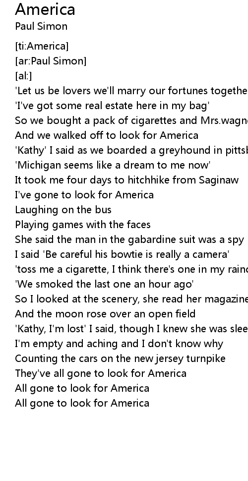 And we walked off to look for America |
