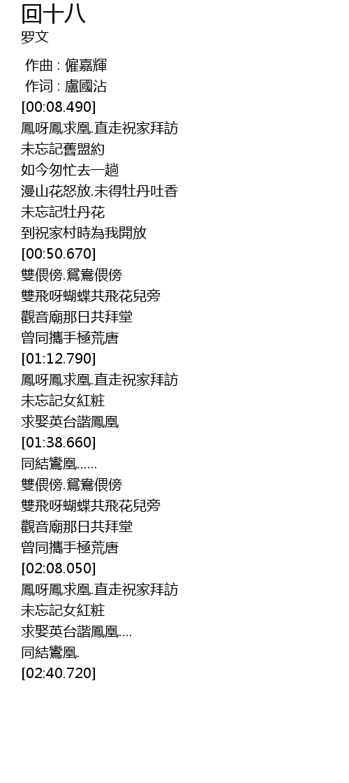 | [02:28.630] | 求娶英台諧鳳凰.... |