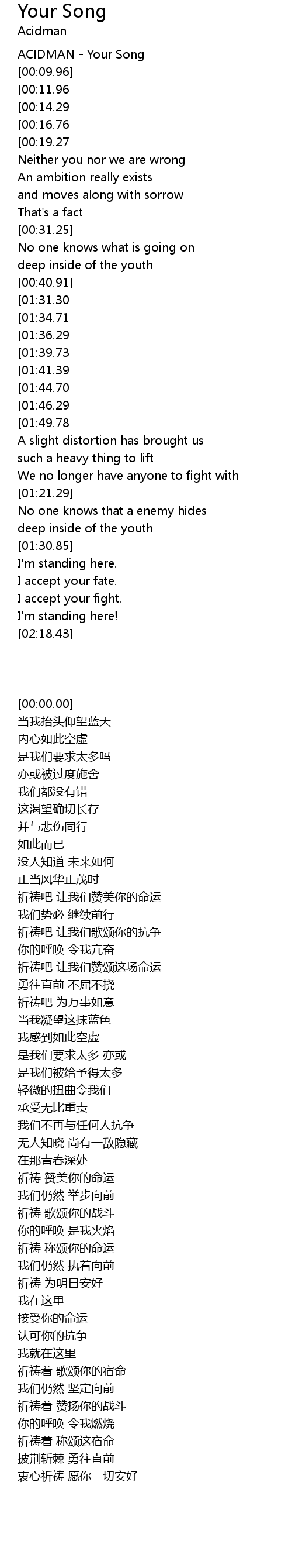 | [02:27.28][01:39.73][00:49.61] | Your calling is my blaze |