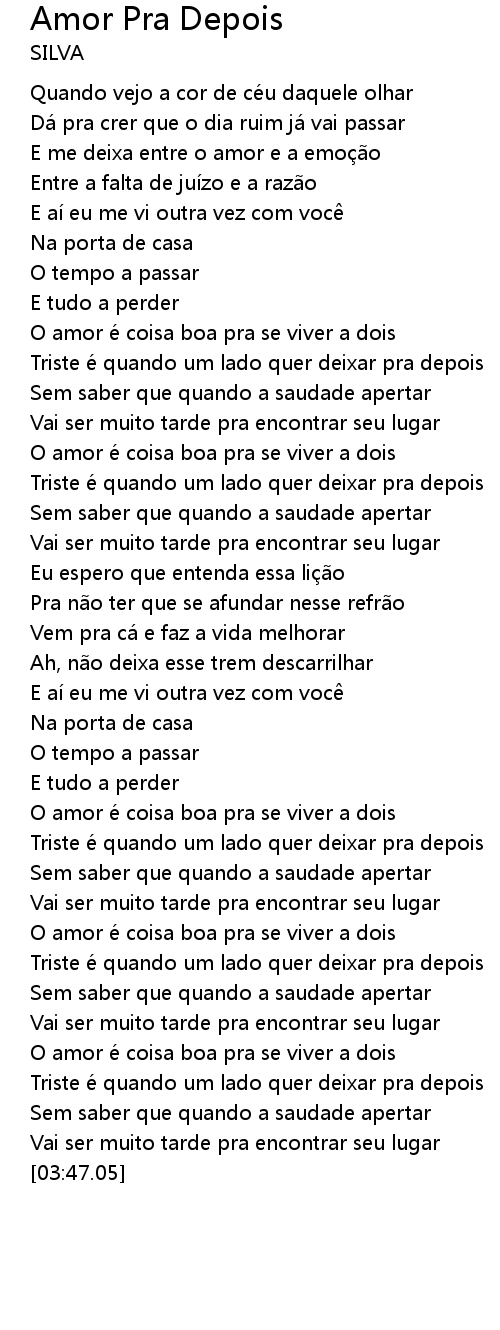 | [03:14.80] | Triste é quando um lado quer deixar pra depois |