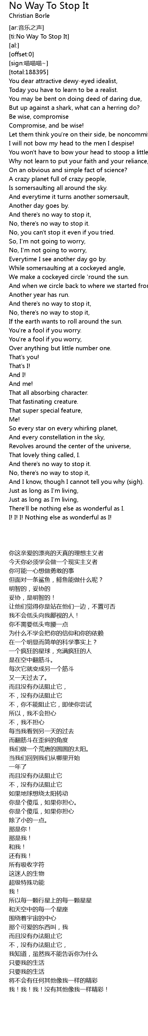 | [01:11.31] | No, you can' t stop it even if you tried. |