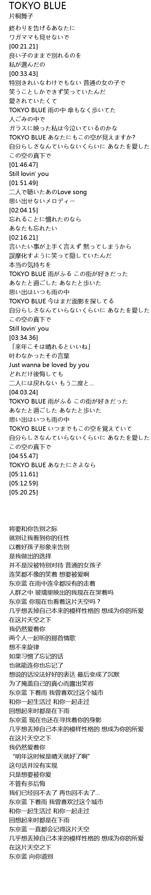 | [00:55.50] | TOKYO BLUE yǔ zhōng sǎn bù |