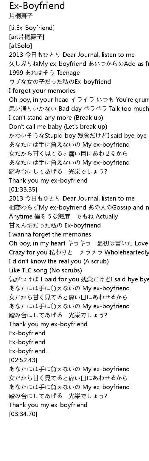 | [00:29.04] | 久しぶりねMy ex-boyfriend あいつからのAdd as friend |