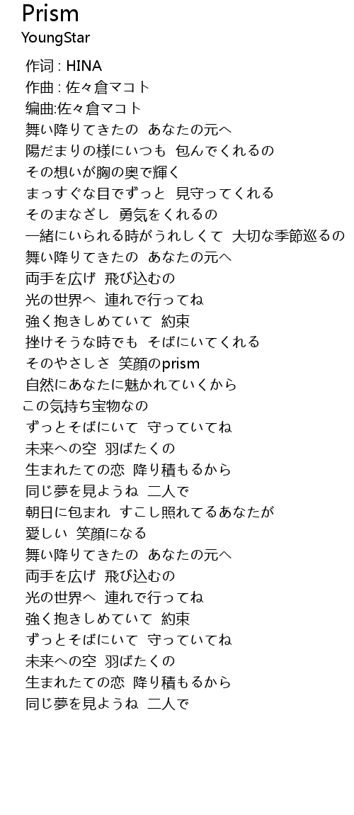 | [02:02.509] | そのやさしさ 笑顔のprism |