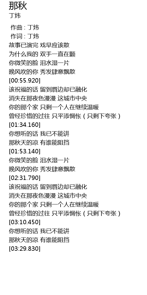 | [03:21.770] | 那秋天的凉 有谁能阻挡 |