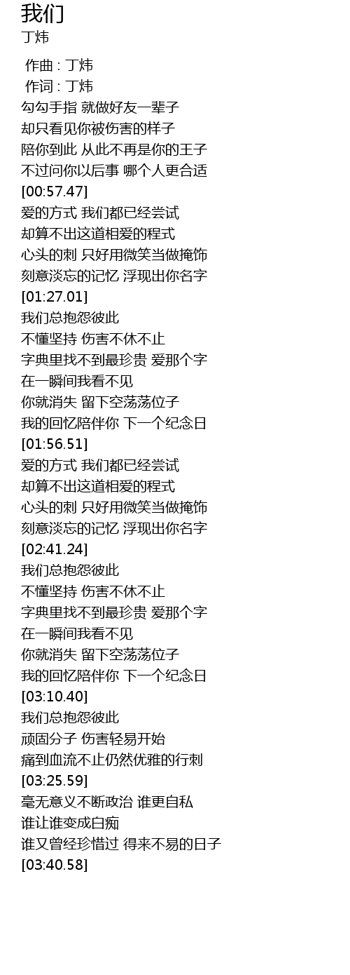 | [00:01.00] | 作词 : 丁炜 |