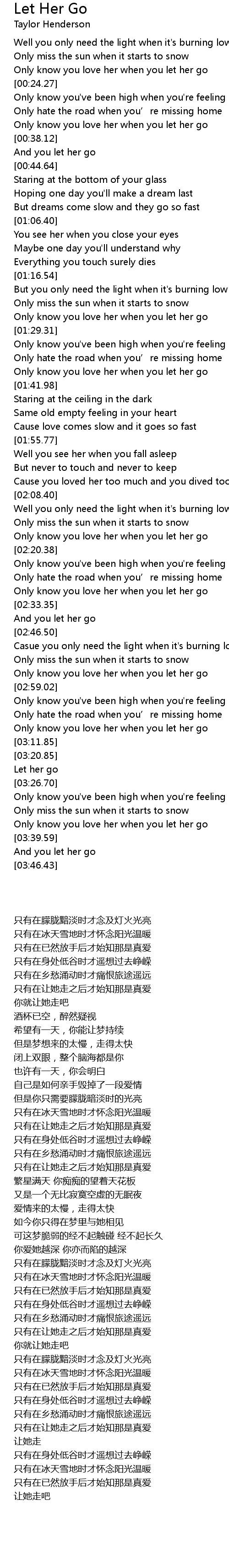 | [03:24.45] | Let her go |